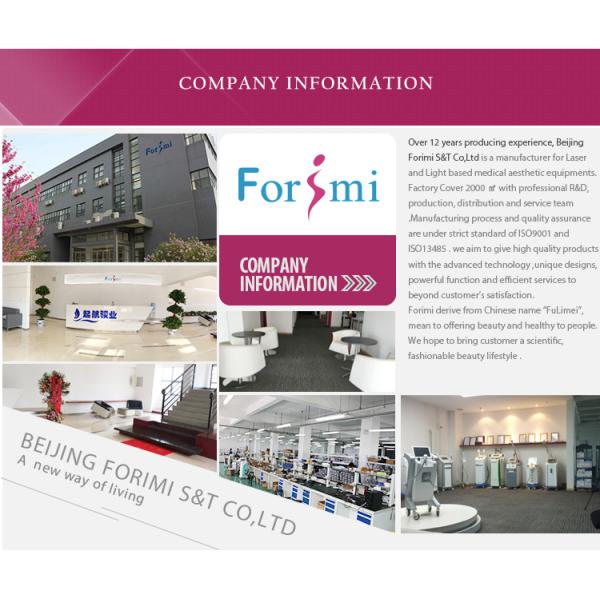 Over 12 years experience, Beijing Forimi S&T Co,Ltd is a manufacturer for Laser and Light based medical aesthetic equipments. Factory Cover 2000 ㎡ with professional R&D, production, distribution and service team .Manufacturing process and quality assurance are under strict standard of ISO9001 and ISO13485 . we aim to give high quality products with the advanced technology ,unique designs, powerful function and efficient services to beyond customer’s satisfaction.